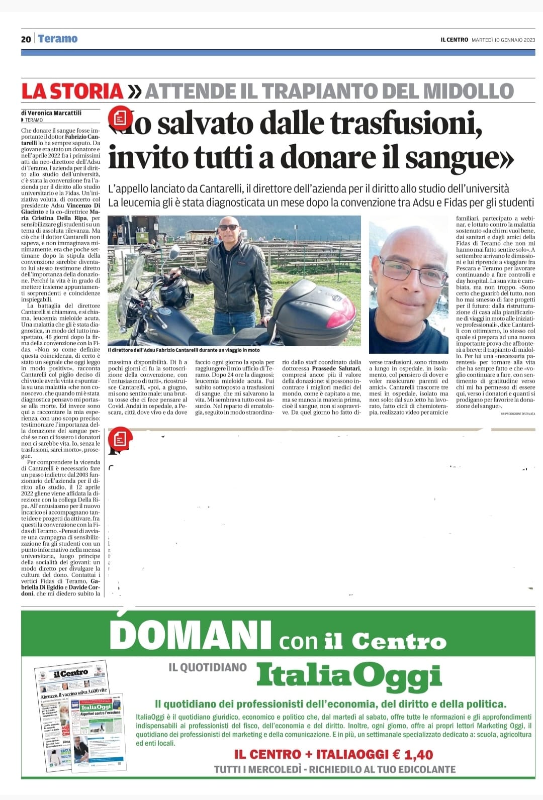 - Veronica Marcattili (Centro Quotidiano D’Abruzzo) – Io salvato dalle trasfusioni, invito tutti a donare