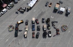 Tappa originale per "Metti in moto il dono". Auto d'epoca e persone scrivono "FIDAS"
