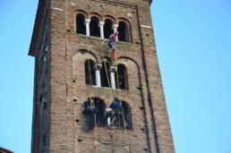 Advs FIDAS Ravenna, i super eroi acrobatici si calano dal Campanile della Basilica di San Francesco