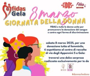 Si chiama “Donna che dona” ed è l’iniziativa di solidarietà e supporto alla comunità promossa da FIDAS Gela in occasione della Giornata Internazionale della Donna. Sabato 8 marzo tutte le donne sono invitate a partecipare a una donazione di sangue recandosi all’Unità di Raccolta di Via degli Appennini 5 .
