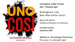 All’introduzione della presidente Associazione “Chauta Aps” seguirà il dialogo con don Marcello Cozzi, Mario Di Nitto (sindaco di Rionero in Vulture) e Arnaldo Lomuti (deputato M5S), moderato da Giuseppe Potenza, presidente dell’Associazione “Le Monadi Ops”.